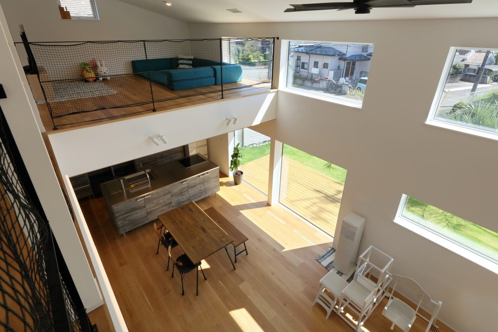 吹き抜けを抱えた21帖のLDK